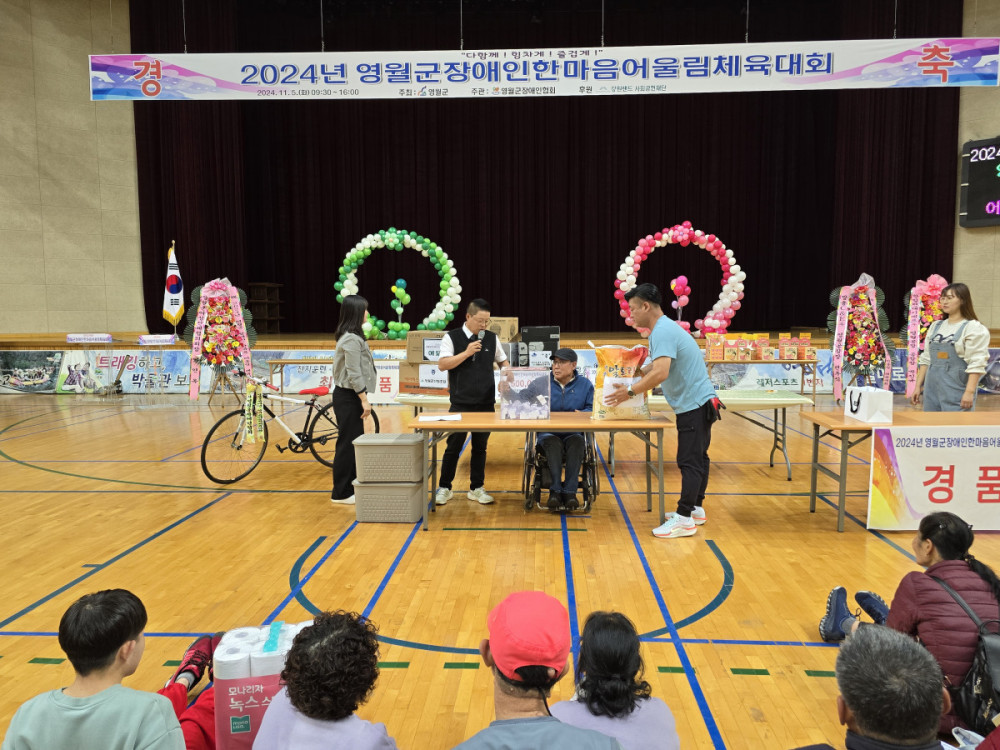 지난 11월 5일 영월군 관내 복지시설 장애인과 비장애인, 시설종사자, 자원봉사자 포함한 300여명 참여하면서 2024년 영월군장애인한마음어울림체육대회가 열렸다.